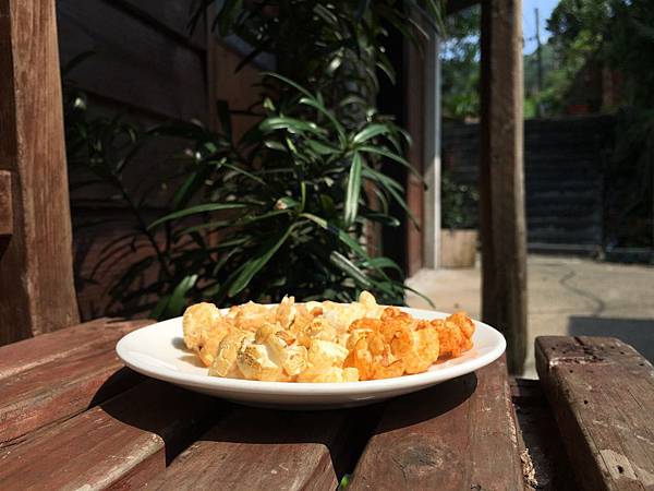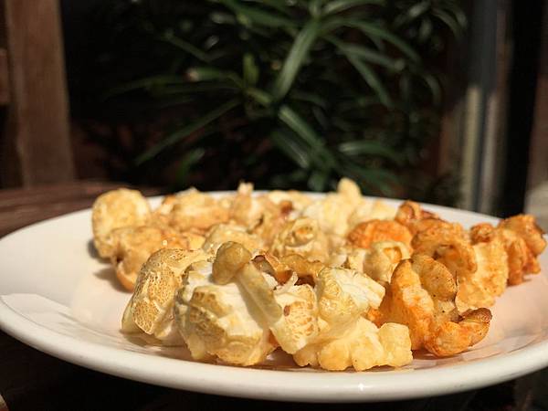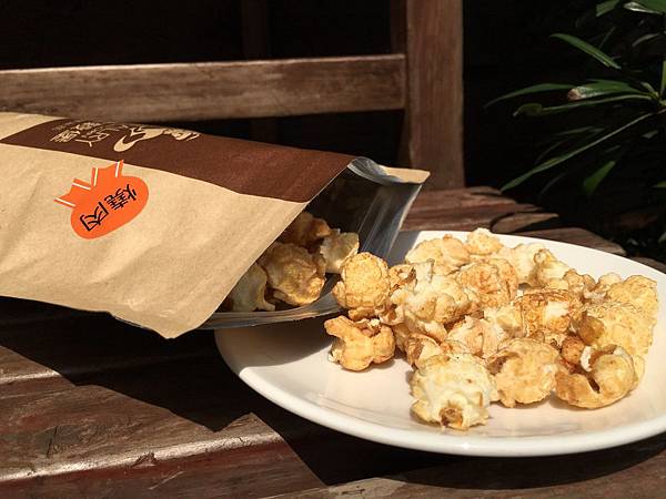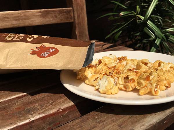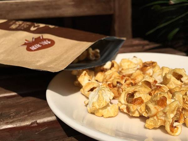 它本身外脆內軟,搭配經高溫翻炒裹附在爆米花上的焦糖