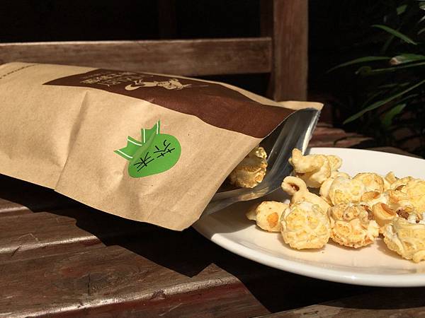 他們家的爆米花採用法國進口非基因改造玉米穀粒與澳洲海鹽手工翻炒製成